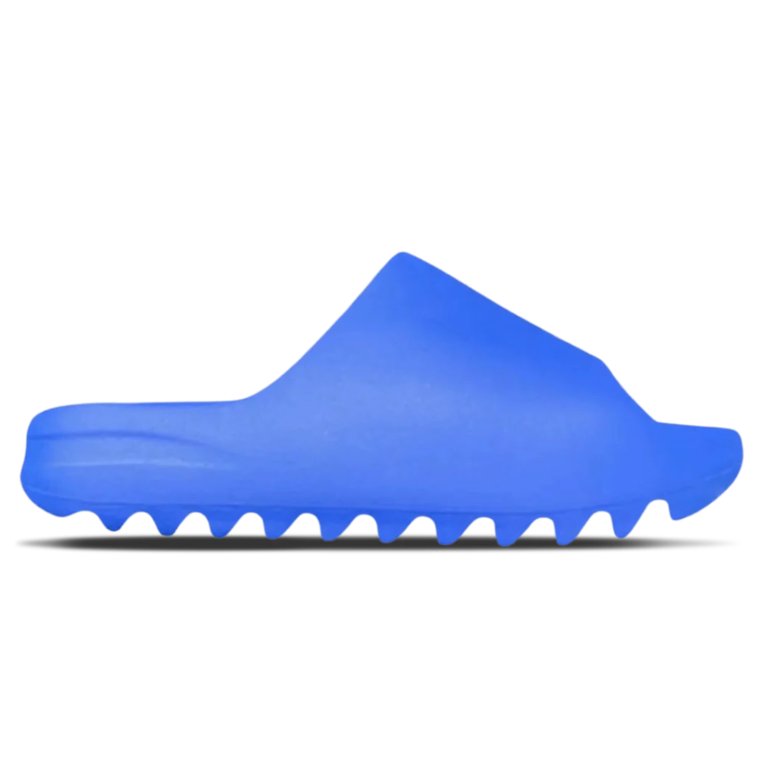 yeezy slide in 'azure blue'. this kanye west collaboration with adidas is the ultimate summer essential.