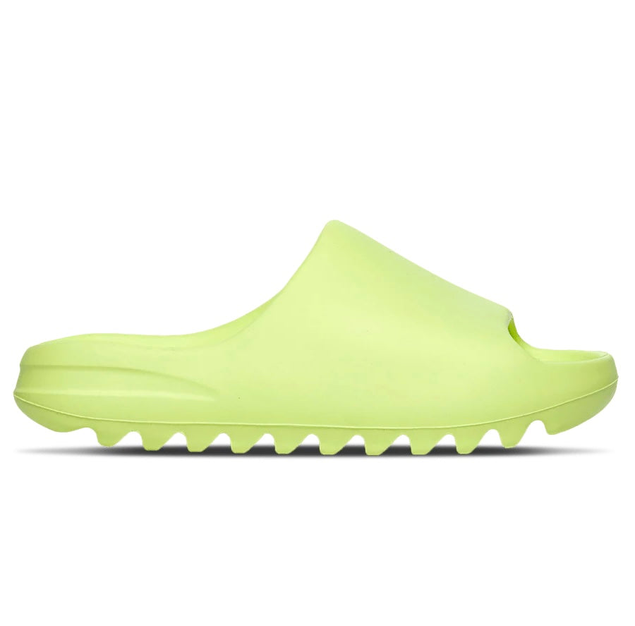 yeezy slide in 'glow green' (2022 restock). this kayne west collaboration with adidas is the ultimate summer essential.