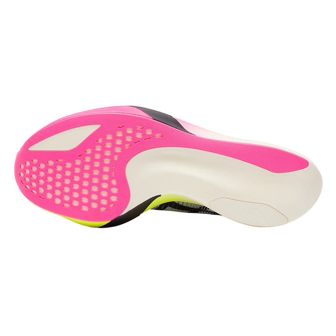 the FF turbo foam used offers 13% more bounce and is 33% lighter than standard FF blast, giving you massive amounts of energy return in an incredibly lightweight package. the carbon plate features a slightly less curved form in this iteration, giving a faster rebound, and requiring less energy to bend it on landing. a new motion wrap upper is made from a lightweight woven jacquard mesh, it offers optimised reinforcement for a solid feel, and even the laces have been updated, with shorter serrated laces providing a secure lockdown.