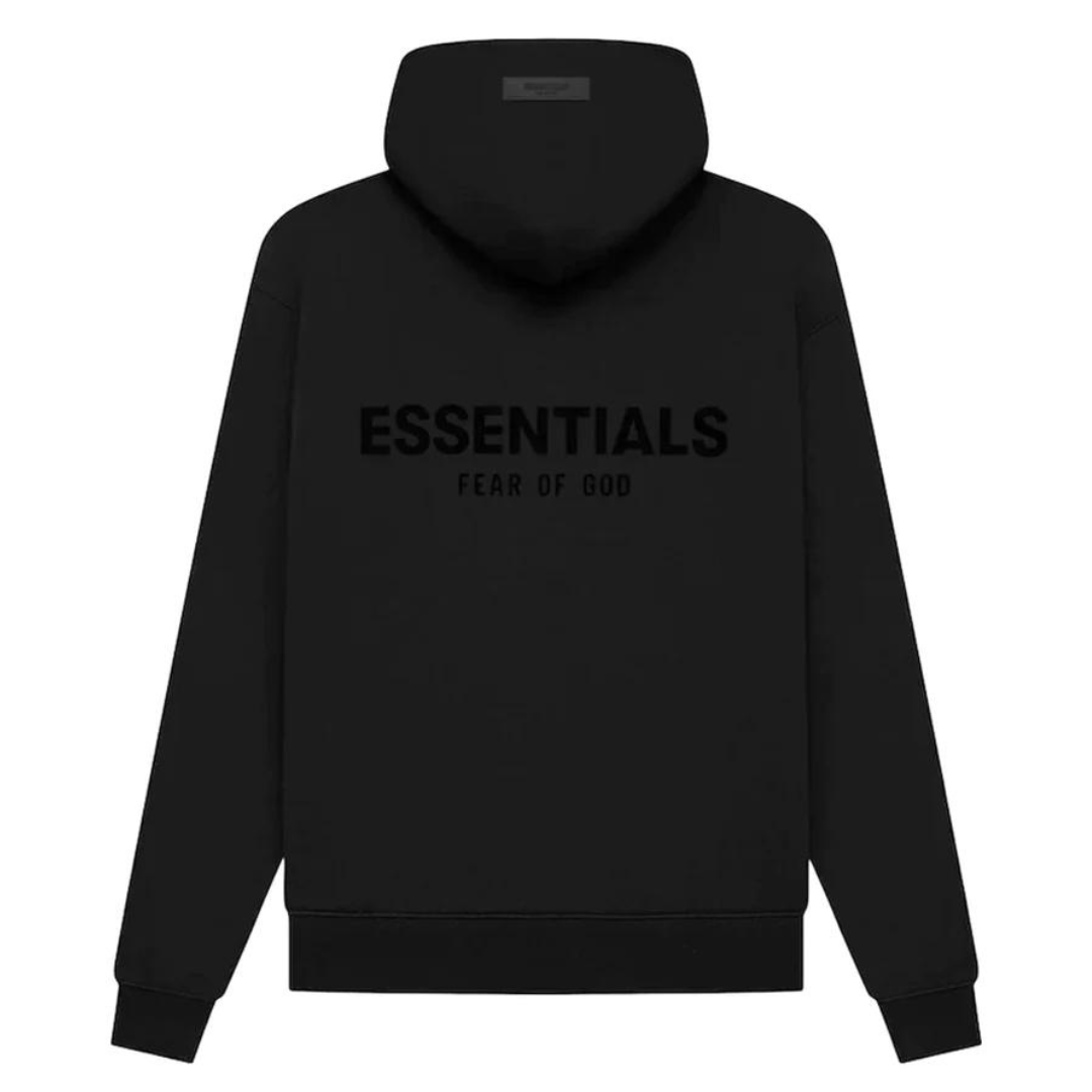 fear of god essentials hoodie in 'black / stretch limo'. jerry lorenzo's fear of god extension brings a collection of cosy fits.