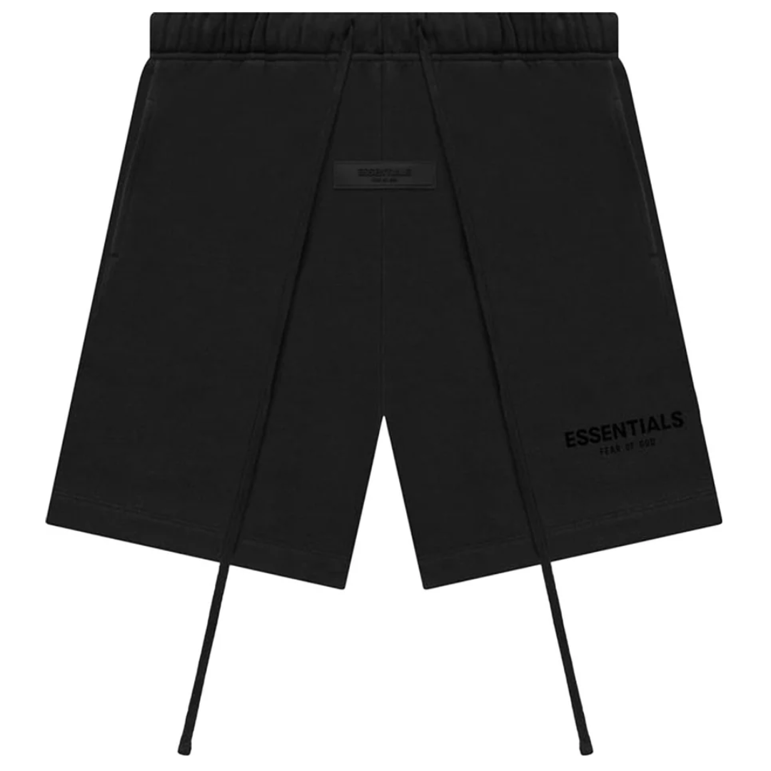 fear of god essentials shorts in 'black / stretch limo'. jerry lorenzo's fear of god extension brings a collection of cosy fits.