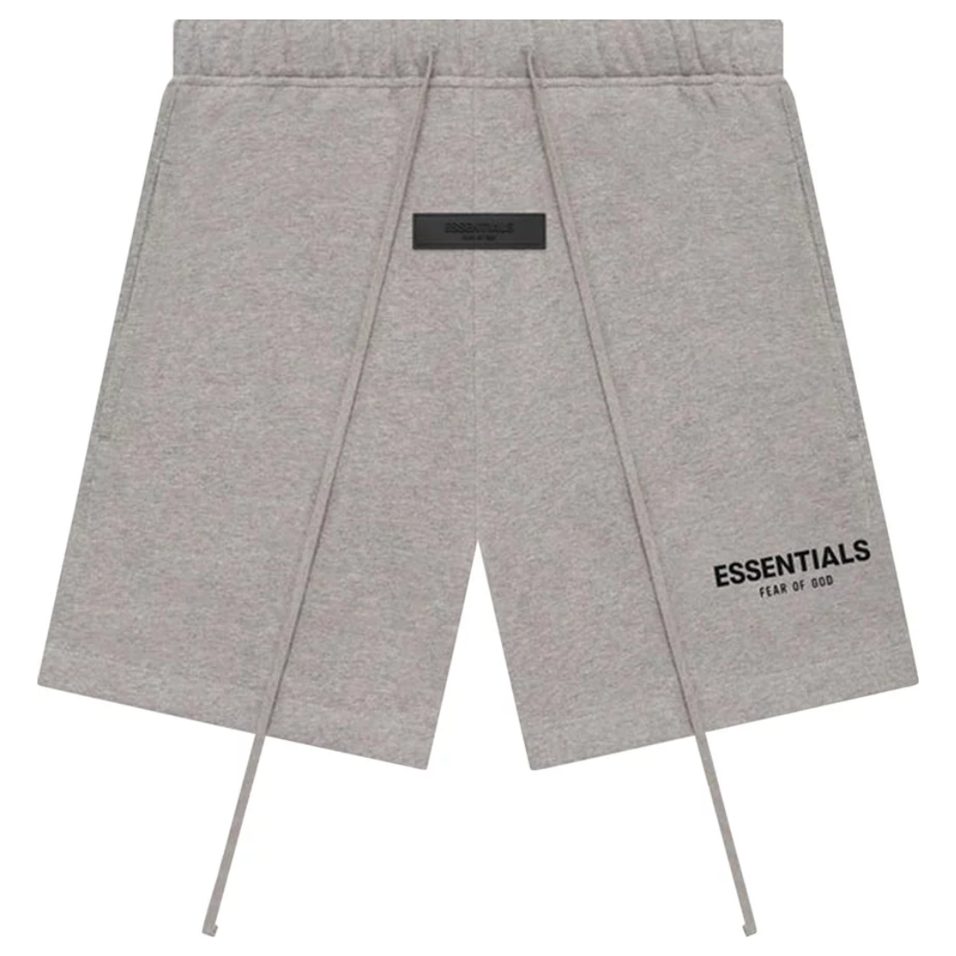 fear of god essentials shorts in 'dark heather / dark grey'. jerry lorenzo's fear of god extension brings a collection of cosy fits.