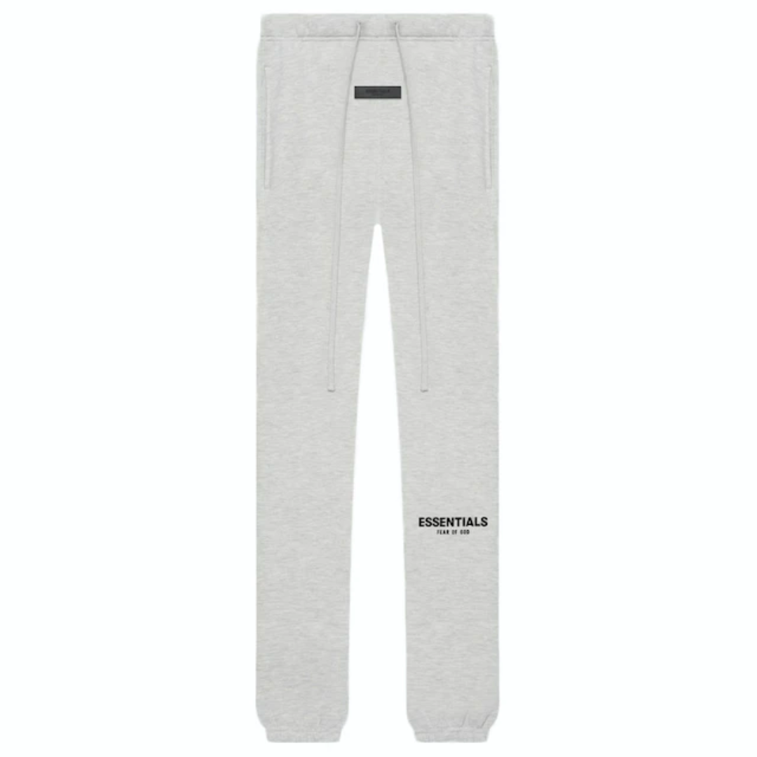 fear of god essentials sweatpants in 'light heather'. jerry lorenzo's fear of god extension brings a collection of cosy fits.