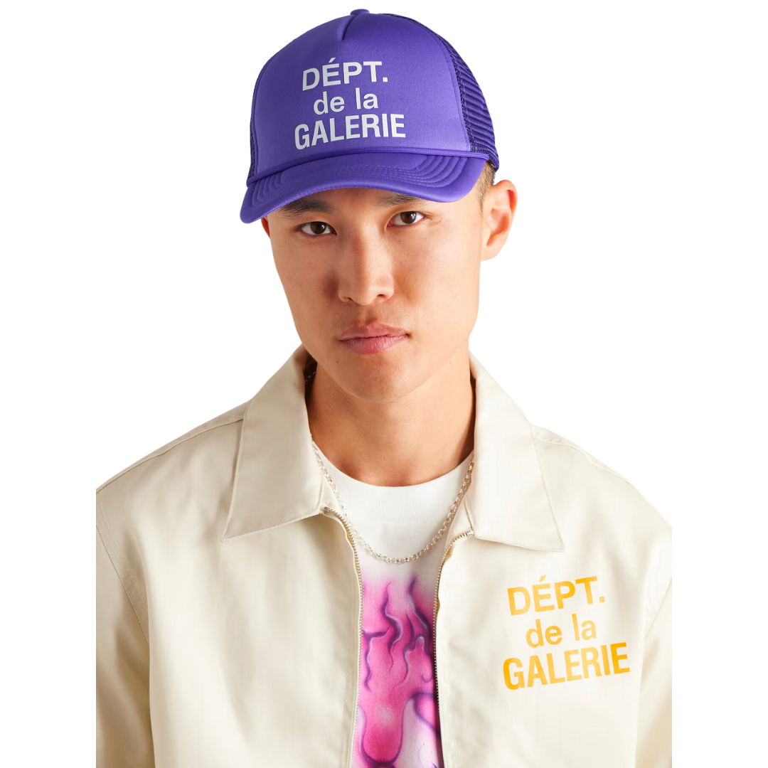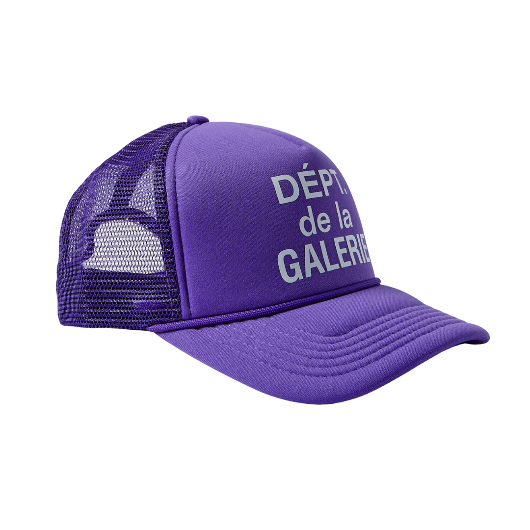 gallery dept trucker cap is made from breathable mesh and printed with the label's 'french' logo across the canvas front panel. use the snap fastening to adjust the fit.